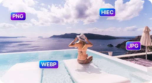 Effortlessly switch formats for editing, e.g., JPEG to PNG for transparency, or HEIC to PNG for broad compatibility.